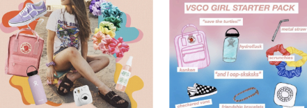 The visual markers of VSCO girl identity, such as scrunchies, Hydro Flasks, and shell necklaces became so widely recognized that they could function as immediate signifiers in memes, TikTok's, and other content formats. This memetic evolution reveals a significant pattern in contemporary digital culture: the increasingly shortened timeline between sincere adoption and ironic distance.